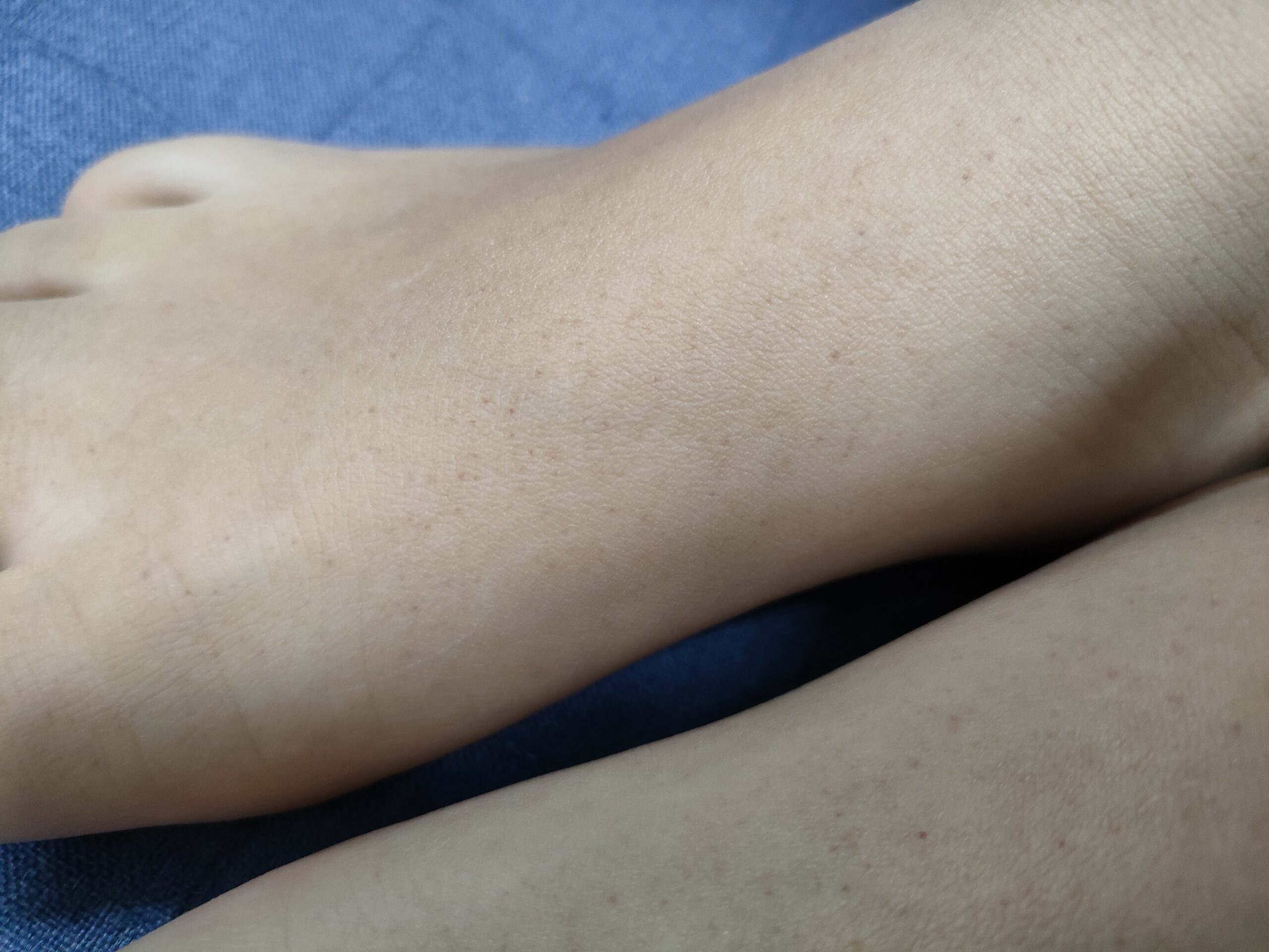 11歳娘の足背にできた紫色の小さな点。