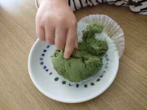 子供たちも一緒に抹茶蒸しケーキを食べました♪